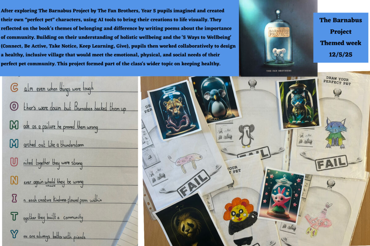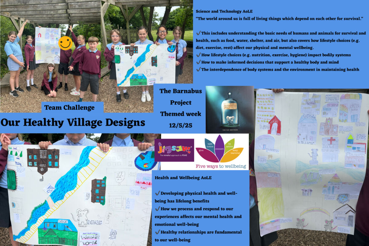 While Year 6 were enjoying Condover, Year 5 were enjoying learning experiences closer to home. Based on the story The Barnabus Project, Year 5 pupils created their own characters and planned a healthy village.