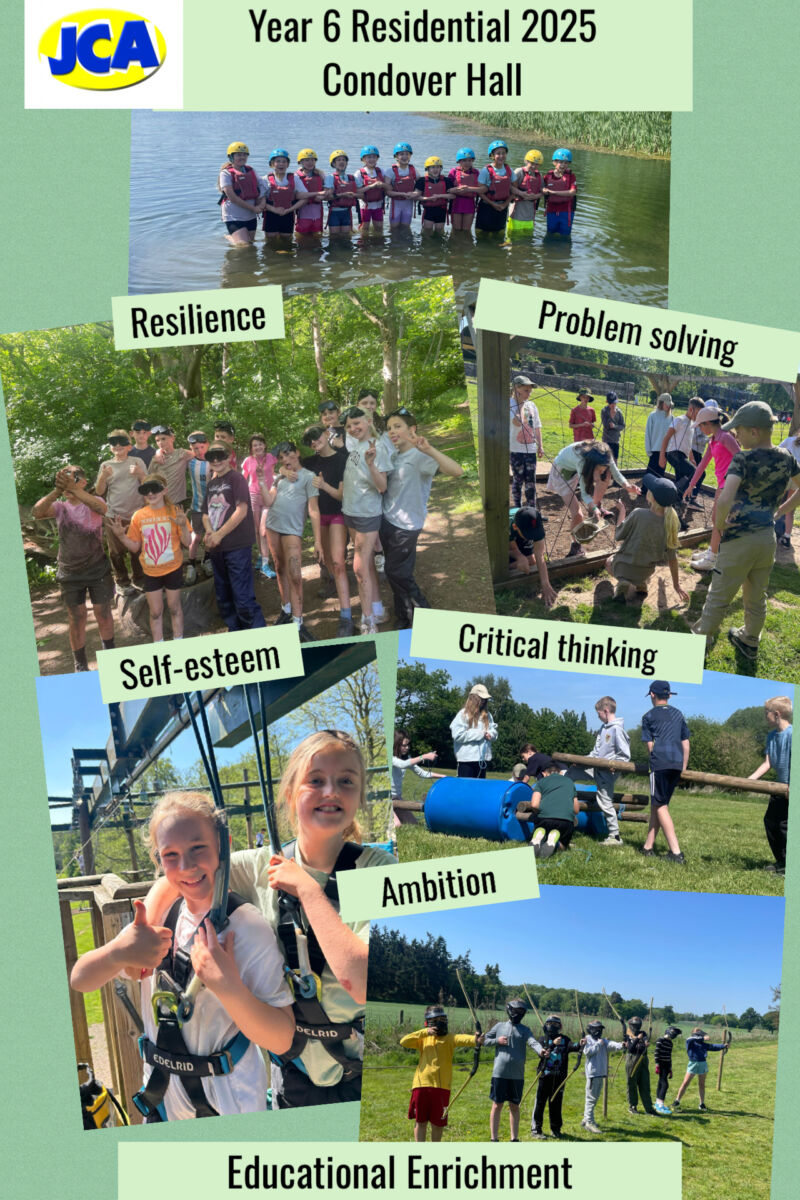 Our Year 6 pupils had an amazing week at Condover in May, trying new activities, gaining confidence, working as a team and finding their independence as they prepare for new challenges in high school, while enjoying some wonderful summer weather. Miss Williams, Mrs Burton and the Condover Staff were incredibly proud of our polite, kind, respectful children, saying “They have given their absolute all, tackling every activity with resilience, determination, and a positive attitude, and their behaviour throughout has been exemplary.” Well done Year 6!