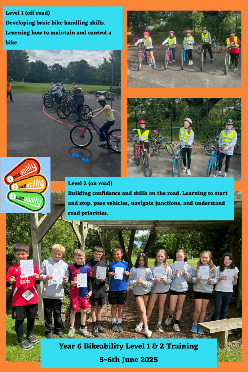 June began with some rather mixed weather conditions, but these were ideal for pupils to develop their bike handling skills, initially in the safety of the school playground, and later on the streets of Overton. Another step in gaining self-confidence and knowing how to stay safe while developing their independence.