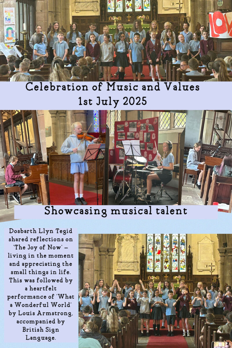 On July 1st our class took part in a Celebration service in church. We spoke about Joy and several of our classmates showcased their musical talents, playing drums, violin and piano.