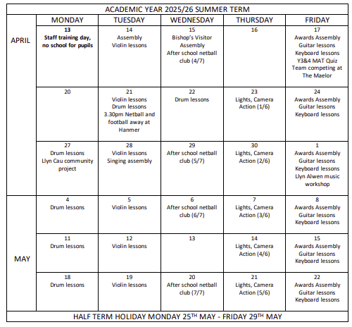 What’s planned this half term?