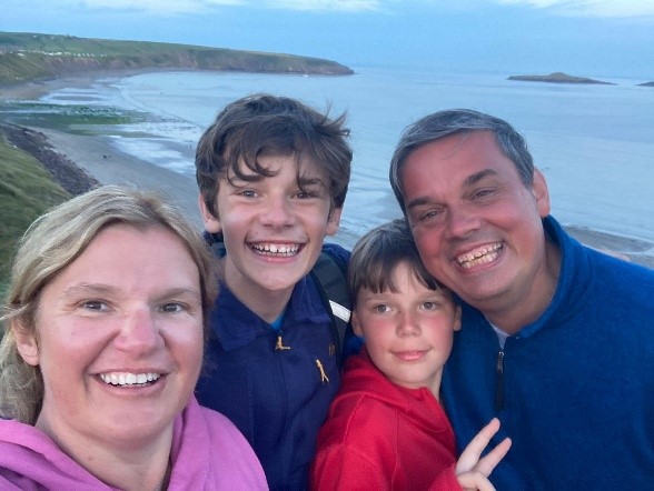 When I’m not working, my happiest place is with my family, especially having adventures with my 2 boys, which as they get older, are becoming more and more precious! We have holidayed for many years in Aberdaron on the Llyn Peninsula in our caravan, and this is our place of calm and joy – unless there’s a brutal storm blowing!!